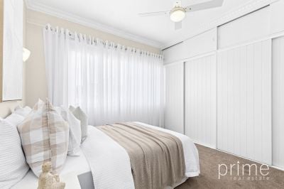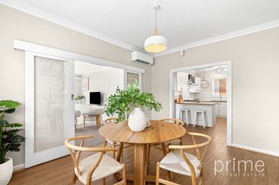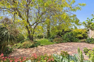 Inside, a welcoming entrance leads to an updated kitchen featuring good storage, stainless steel appliances including a dishwasher, and a practical breakfast bench. The separate dining room flows seamlessly into the light-filled living area that features built-in-cabinetry providing excellent storage, where a gorgeous garden outlook and a charming balcony create an inviting space to unwind, a perfect setting to enjoy your morning coffee or evening gatherings overlooking the tranquil established rear garden. This outdoor space is a true highlight, offering a private retreat where you can unwind amidst nature. Whether you're hosting summer barbecues or simply enjoying a quiet evening under the stars, this backyard is sure to impress.
